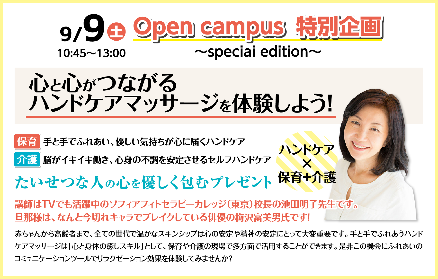 • 技術とコツを学びとる!保育と介護の実践ワークショップ